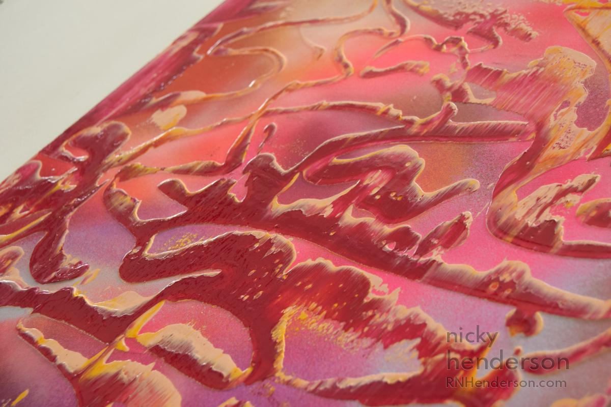Mixed media on lino tile